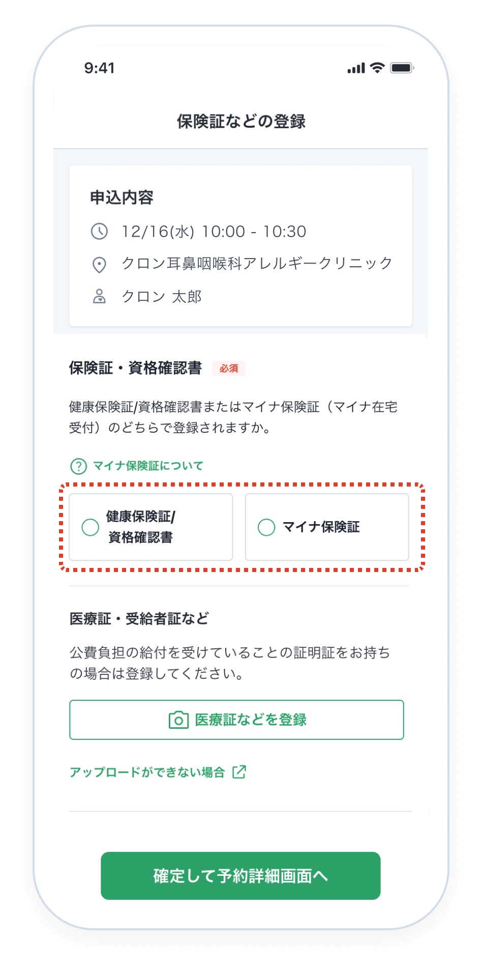 保険診療の場合は、診察回ごとに保険証/資格確認書を確認します。予約時や診察を受ける際には、必ずお手元にご用意ください。